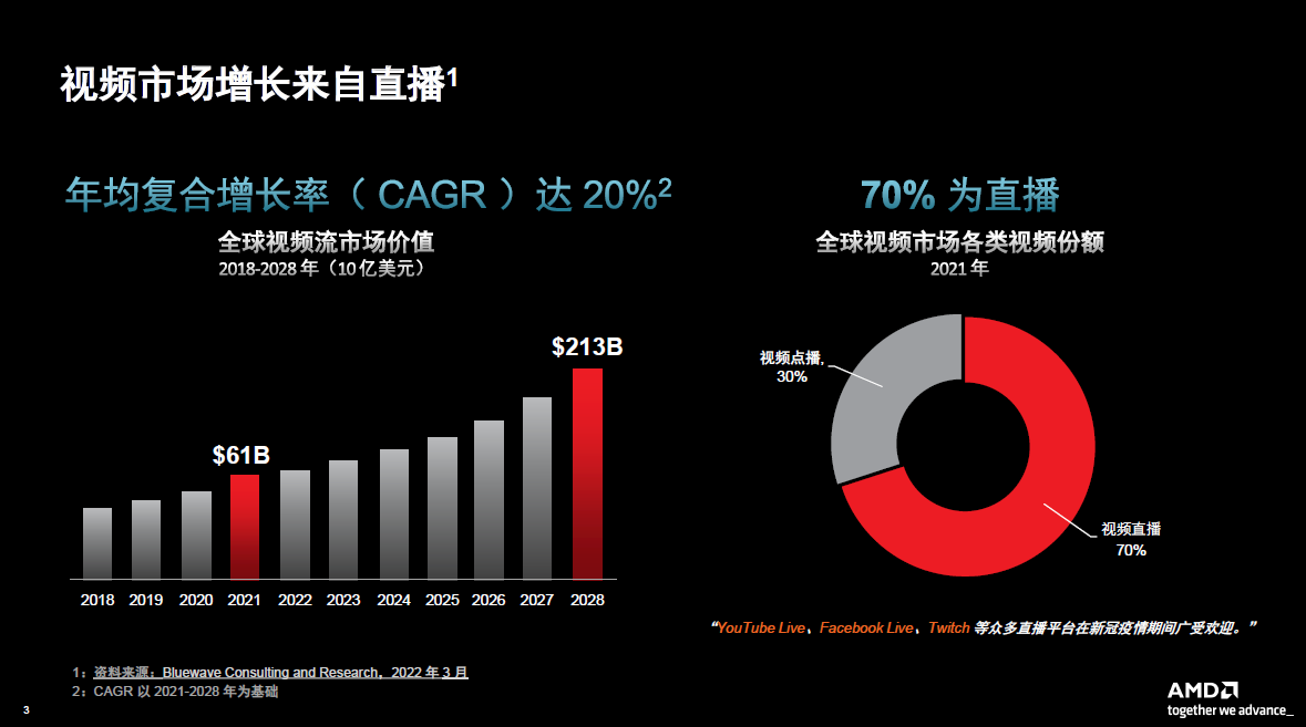 In the live broadcast market, both in terms of revenue and infrastructure deployment, growth is very rapid. Data in 2021 shows that more than 70% of the global video market is dominated by live content.