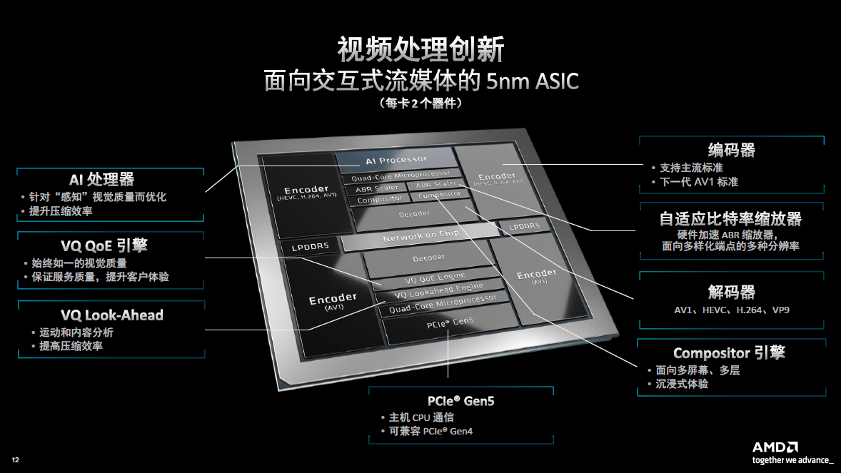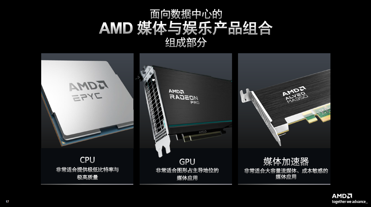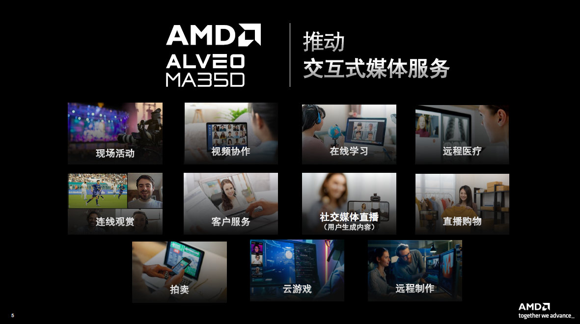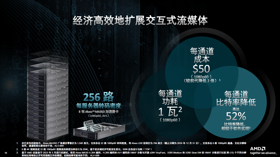Alveo MA35D is not a competitive product for AMD's CPU and GPU, but a complementary product. All of these products have their own merits and are very efficient. CPUs can provide very high performance compression. But if you are dealing with millions of streaming videos, the economics are not high. If there are application scenarios that require image rendering, GPU is the best tool. There are also some applications that require the collaboration of all three to provide a very cost-effective and high-performance solution. For example, in cloud e-sports or cloud games, the GPU can present as much game content as possible, the Alveo MA35D completes all low-latency and high-quality encoding, and the EPYC CPU can complete all application-level system processing. This combination can provide customers with the highest density at a very favorable price and low power consumption.