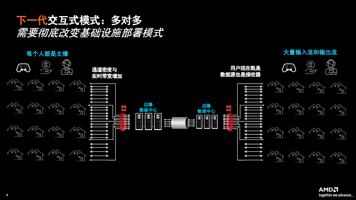 Compared with the traditional live broadcast scenario, the next generation live broadcast scenario is mainly a many-to-many model, that is, everyone is the anchor, both a data source and a receiver. Such scenarios include online viewing, live shopping, online auctions, and social streaming media. Such application scenarios require data processing to be closer to users and require such processing to be moved to the edge of the network. Handling these application scenarios at the edge means that the economic benefits that can be obtained through cloud concentration no longer exist, so it is necessary to completely change the infrastructure deployment model.
