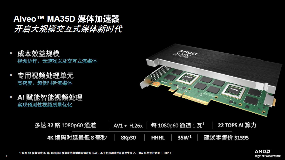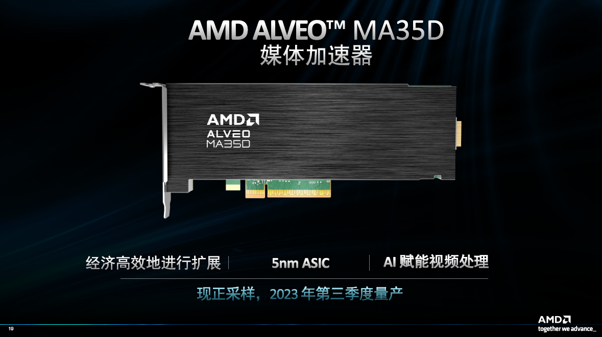 Samples of the Alveo MA35D media accelerator card are available now, with volume shipments expected in the third quarter. Finally, in general, the Alveo MA35D was developed from the ground up by AMD and is optimized for high-capacity, interactive streaming, with the goal of achieving high cost-effectiveness in both capital expenditures and operational expenditures.