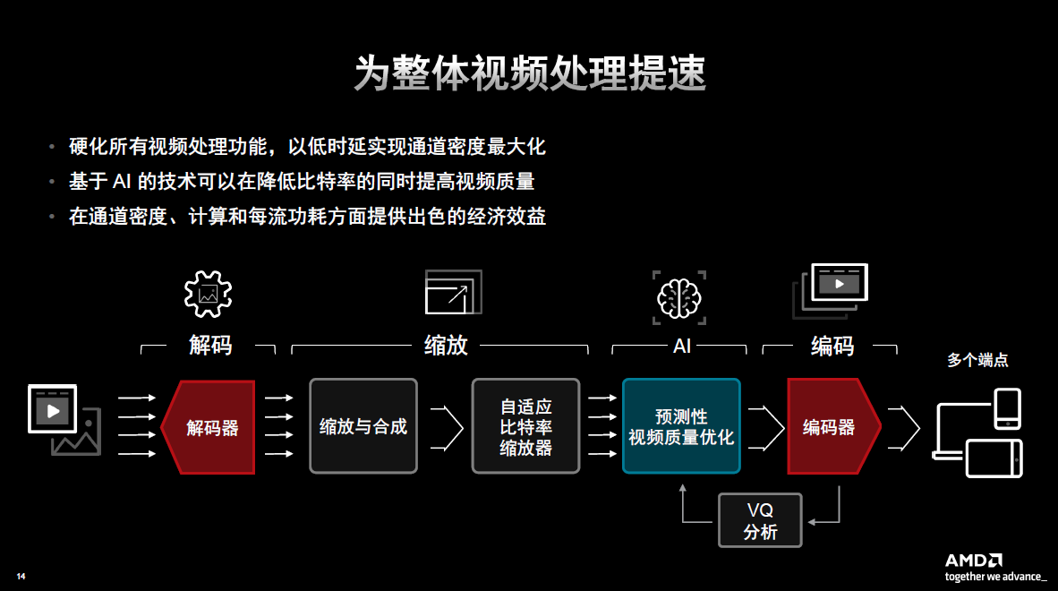 However, artificial intelligence is not perfect, so when making dynamic adjustments, there may be some inaccuracies or errors in judgment. So one of the innovations AMD has made is the VQ analysis IP module. This IP module will form a feedback loop during the dynamic adjustment and change process of artificial intelligence to ensure that the decisions made are not wrong. Through VQ analysis, the quality of each frame of the video can be ensured, and if an error occurs, it can be adjusted in time. "Although similar solutions have been implemented in traditional models, we are still pleased to see that this solution can be implemented in such real-time and very low-latency application scenarios." Gardner added.